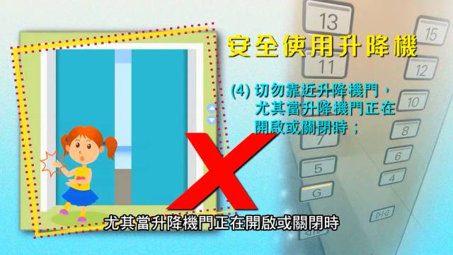 切勿靠近電梯門,尤其當電梯門正在開啟和關閉時!