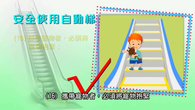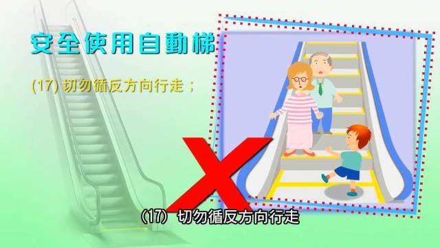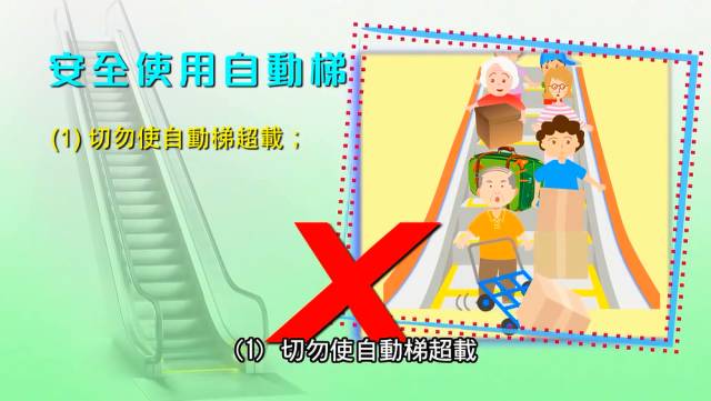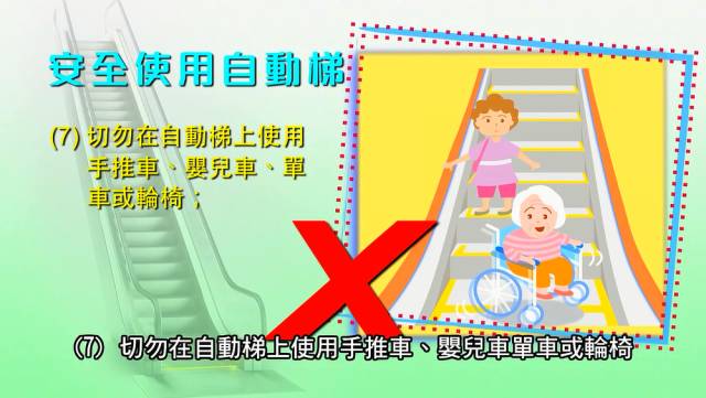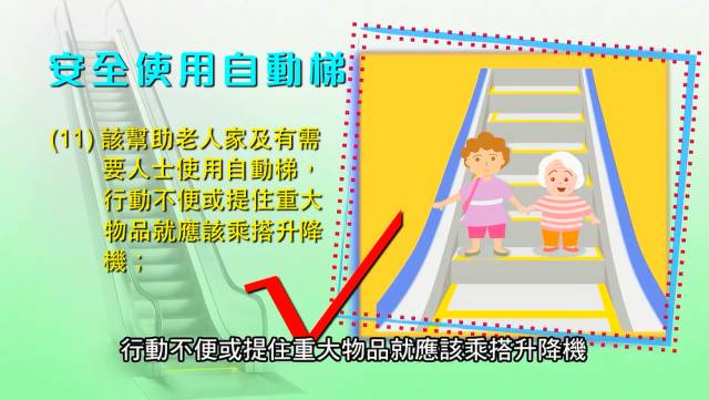請幫助老人家及有需要人士使用自動扶梯,行動不便或攜帶重大物品就應該搭乘自動扶梯!