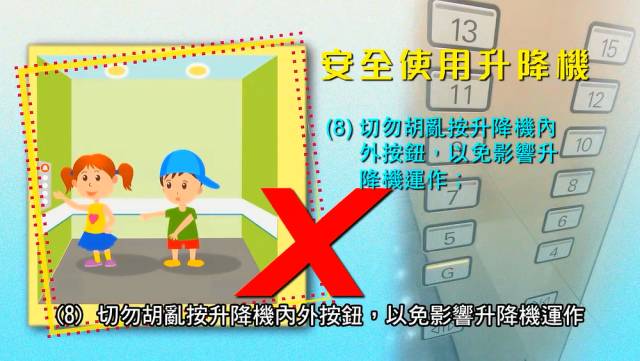 切勿胡亂按電梯內外按鈕,以免影響電梯運作!