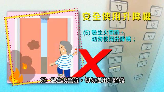(七)遇火災、地震或其它災害時,請勿乘坐電梯。